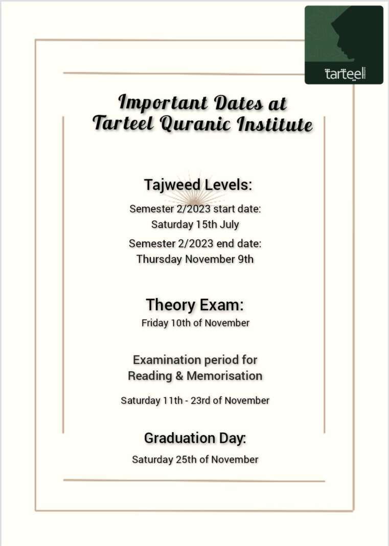 Students please be mindful of the following dates. Baaraka Allahu Feekum